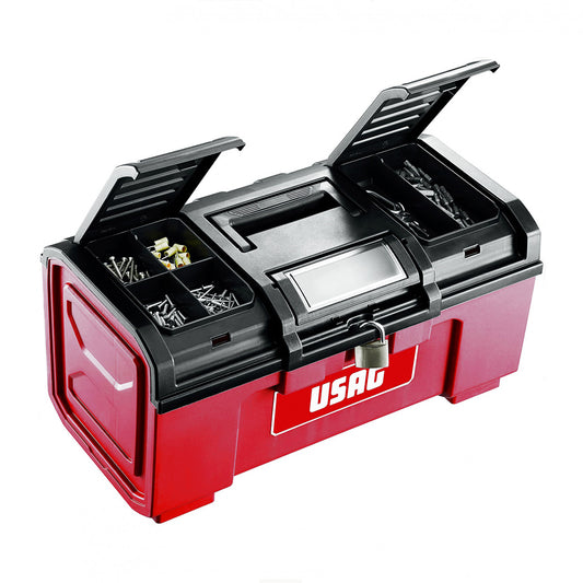 Cassetta porta attrezzi compatta USAG 19" vuota in plastica resistente con vassoio e chiusura per lucchetto