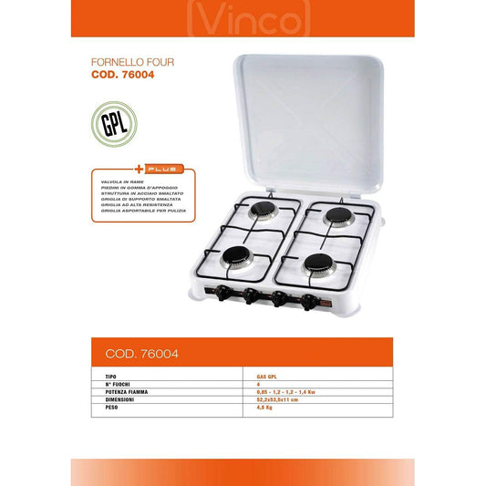 Fornello a gas da campeggio quattro fuochi da 0,85 a 1,4 kW