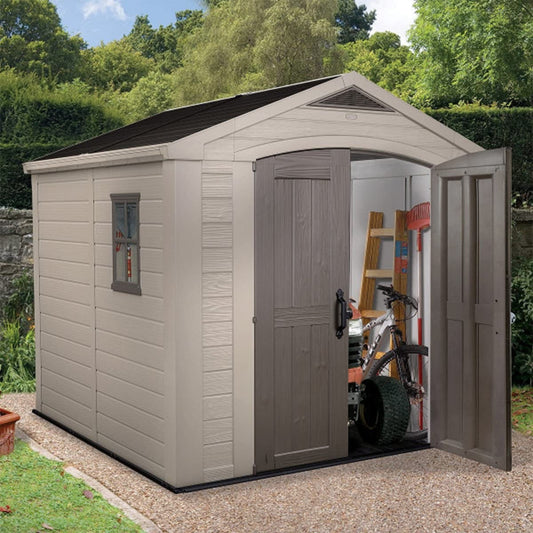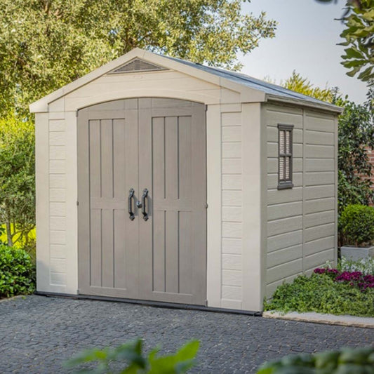 Keter casetta da giardino Factor 8x8 in resina colore beige con mensole