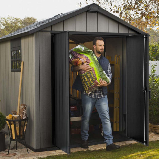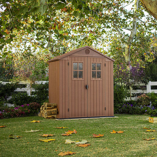 Keter casetta da giardino Darwin 6x8 in resina con doppia finestra e pavimento incluso