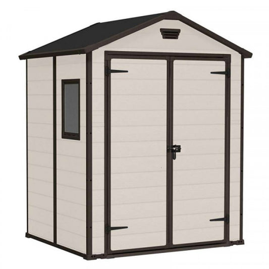 Keter casetta da giardino Manor Pent 6x4 in resina colore beige con finestra