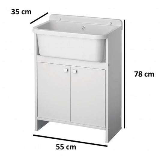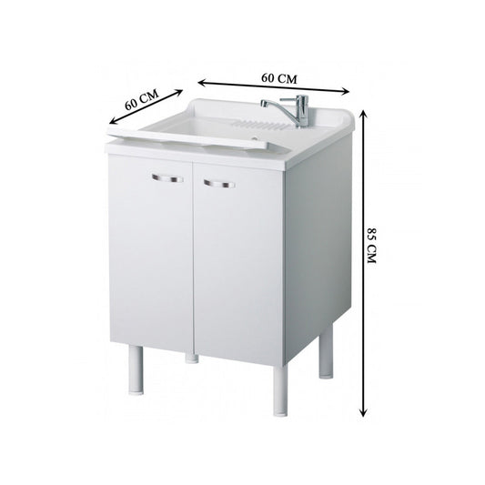 Lavatoio bianco con due ante 60 x 85 x 60 cm Negrari con vasca in resina