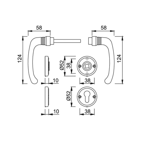 Maniglia Hoppe Macau rosetta e bocchetta quadre 49x49 mm foro cilindro