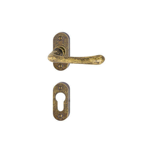 Maniglia Hoppe Lisboa rosetta e bocchetta tonde d. 52 mm foro cilindro argento antiqua