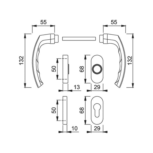 Maniglia Hoppe Lisboa rosetta e bocchetta ovali 28x68 mm foro cilindro