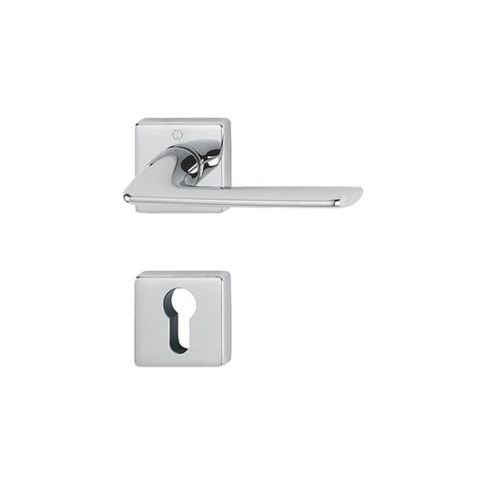 Maniglia Hoppe Macau rosetta e bocchetta quadre 49x49 mm cromo satinato con nottolino