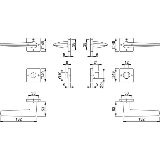 Maniglia Hoppe Macau rosetta e bocchetta quadre 49x49 mm