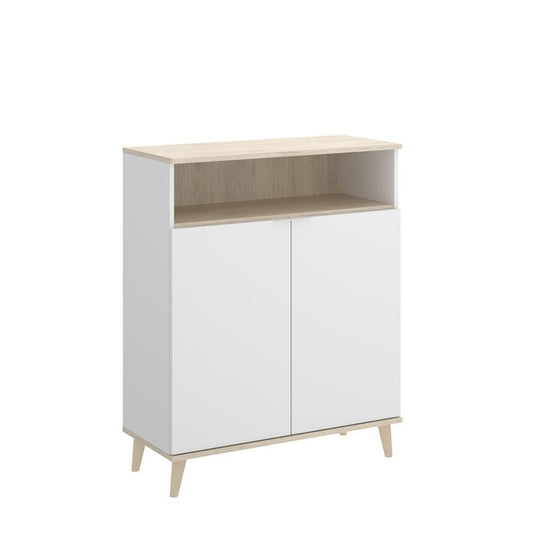 Mobile multiuso 82x102h cm bianco e rovere con 2 ante e 1 cassetto