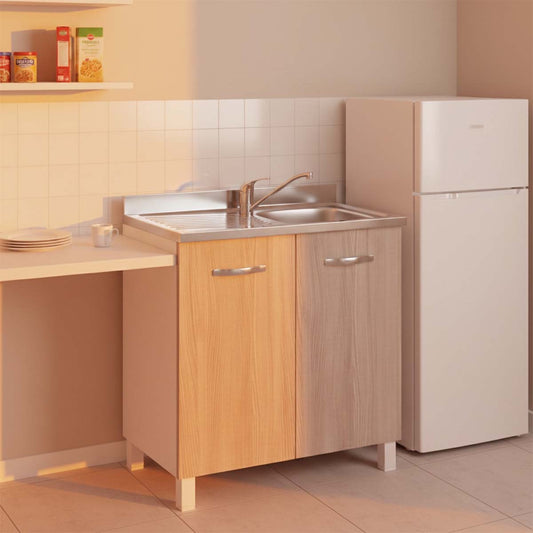 Mobile sottolavello cucina 2 ante 80 cm olmo perla con lavello 1 vasca inox