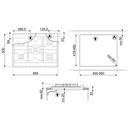 Piano cottura a gas 5 fuochi 70 cm Smeg SRV575GH5