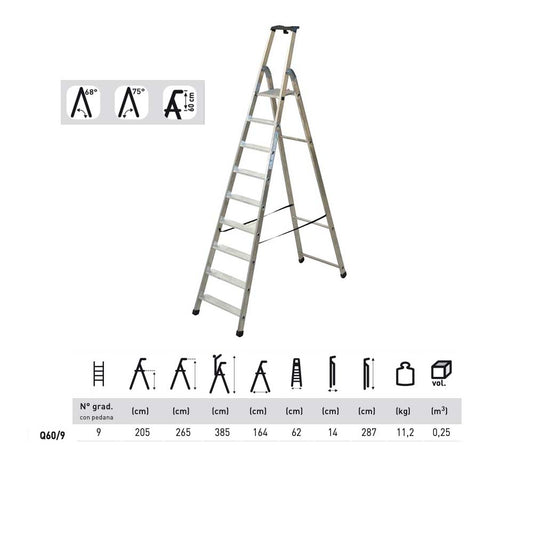 Scala quadra 9 gradini h. 265 cm Facal alluminio