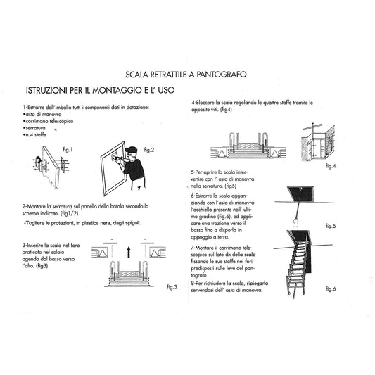 Scala retrattile in acciaio 300 cm con botola a soffitto 70x90 cm corrimano