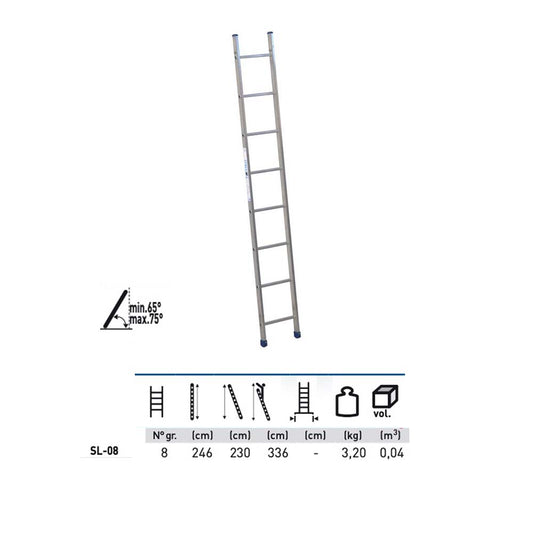 Scala stilo S da appoggio 8 gradini h. 246 cm in alluminio