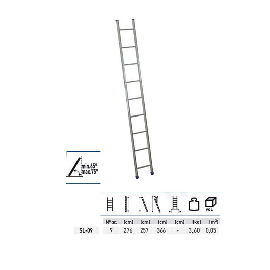 Scala stilo S da appoggio 9 gradini h. 276 cm in alluminio