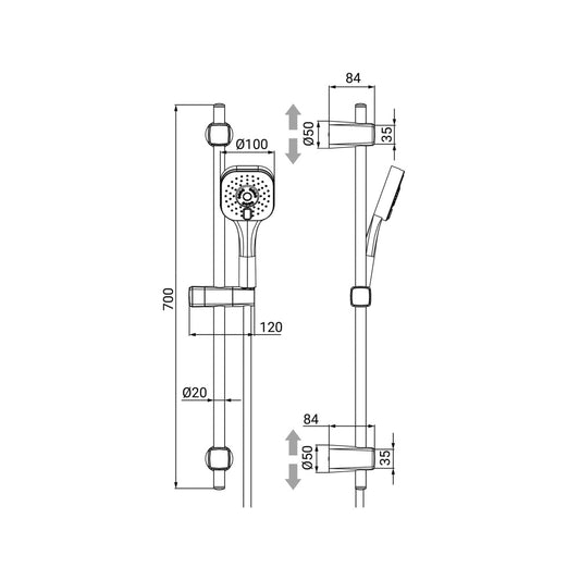 Set saliscendi Paros 2 getti d. 22 mm lunghezza 1500 mm