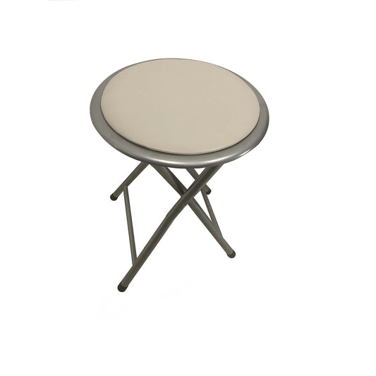 Sgabello pieghevole in metallo tondo imbottito beige e argento
