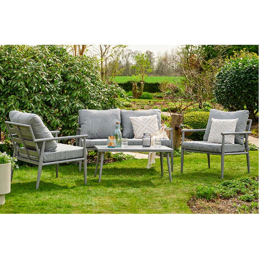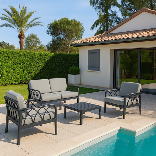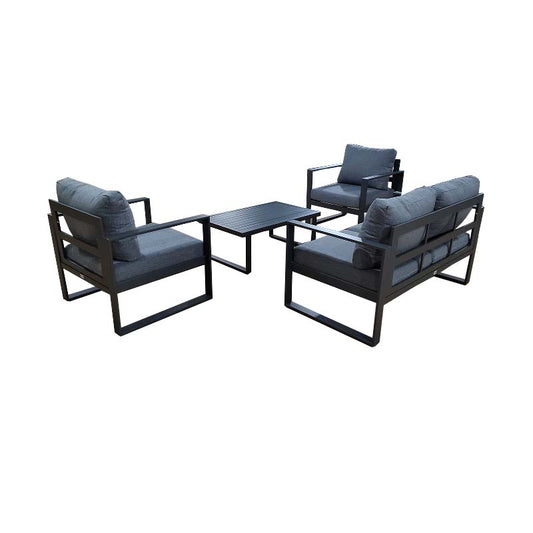 Set da giardino 4 pezzi in alluminio nero con cuscini grigio Maui