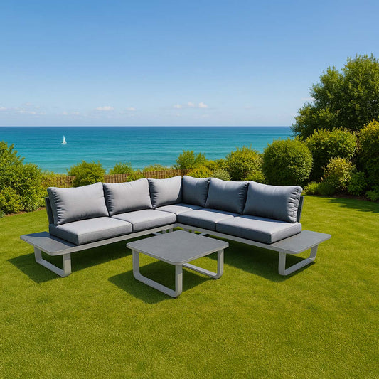 Set da giardino in alluminio bianco e grigio con cuscini Tulum