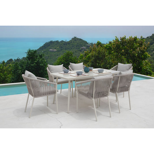 Set da giardino in alluminio e corda con cuscini bianco e beige