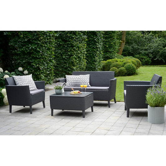 Set da giardino in rattan Keter 2 poltrone divano con tavolino grafite Salemo