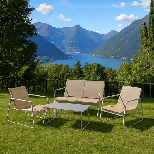 Set da giardino metallo due poltrone divano con tavolino tortora Tropea