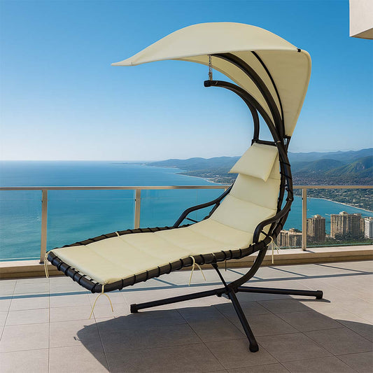Poltrona dondolo da esterno con parasole ecrù Larissa