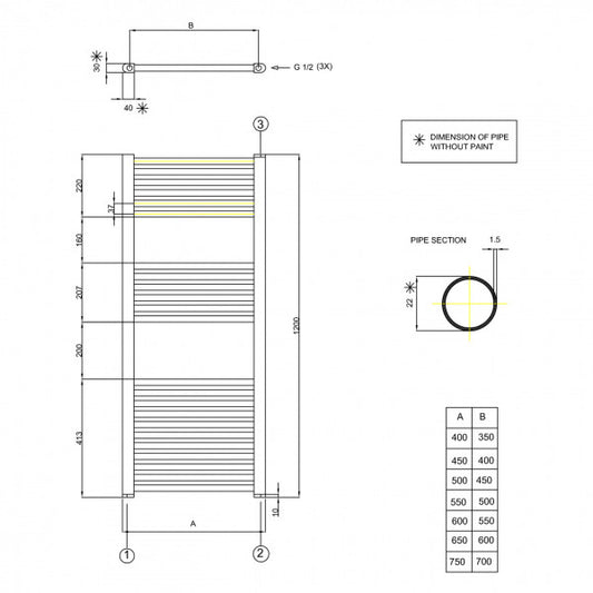 Termoarredo scaldasalviette Elena 1200x500 mm 26 elementi bianco