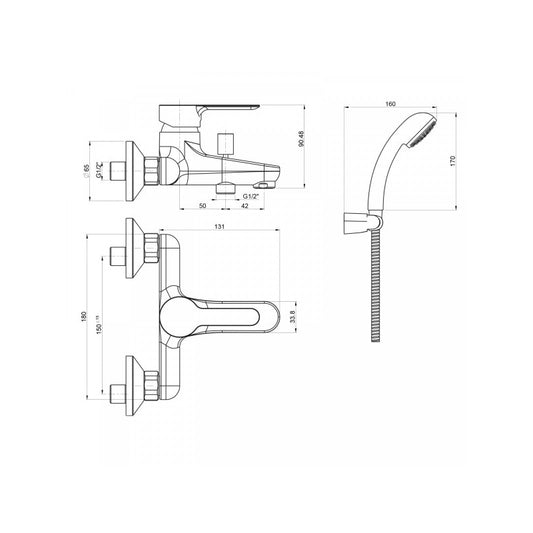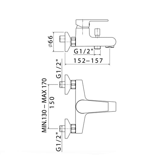 Miscelatore esterno vasca e doccia serie Logos cromo