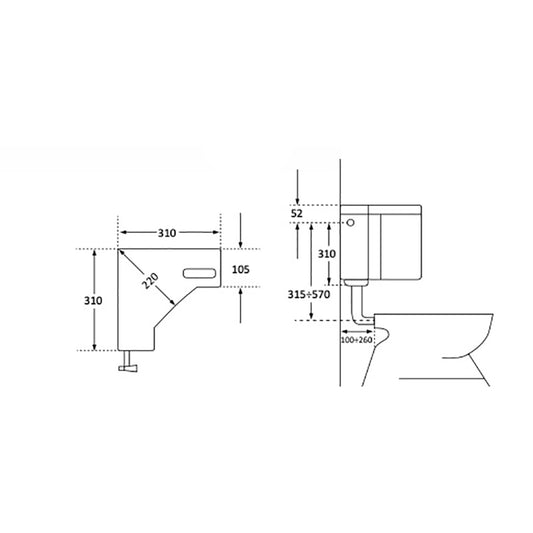 Cassetta per WC angolare in ABS 315x315x355 mm 9 litri con rubinetto