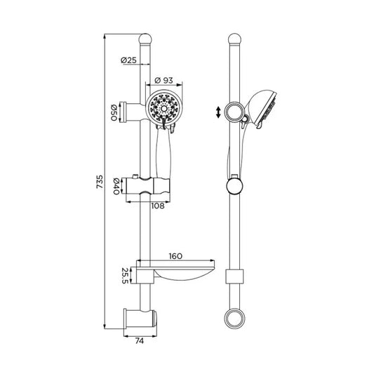 Saliscendi doccia Butterfly 5 funzioni sistema ecorisparmio asta flessibile 150 cm