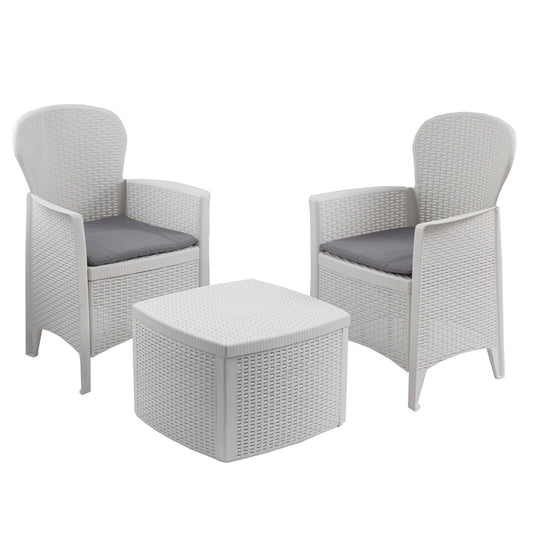 Set da esterno Tree effetto rattan 1 tavolo e 2 poltrone con cuscini