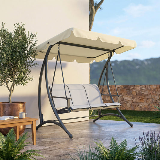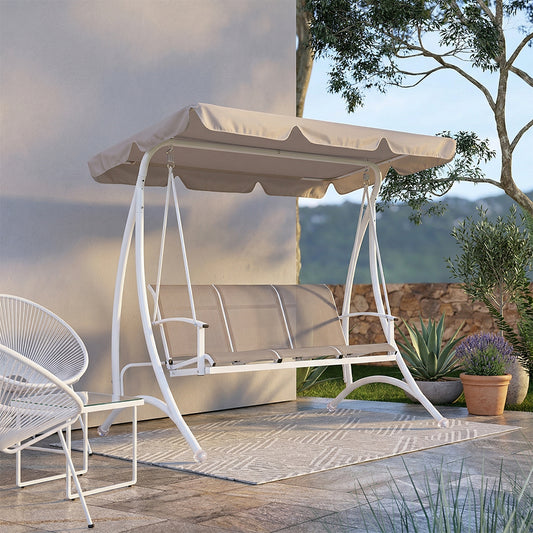 Dondolo da giardino 3 posti Astros in metallo con parasole bianco e tortora