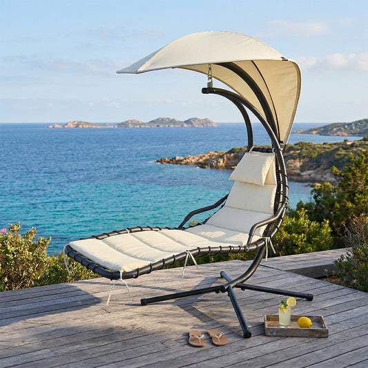 Poltrona dondolo da esterno con parasole ecrù Larissa