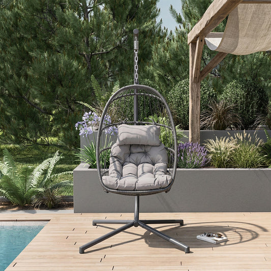 Poltrona uovo sospesa da giardino in metallo e corda colore grigio con cuscino