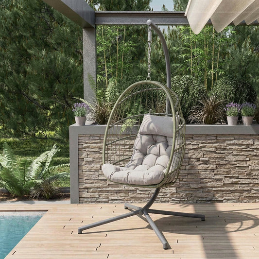 Poltrona uovo sospesa da giardino in metallo e corda verde con cuscino