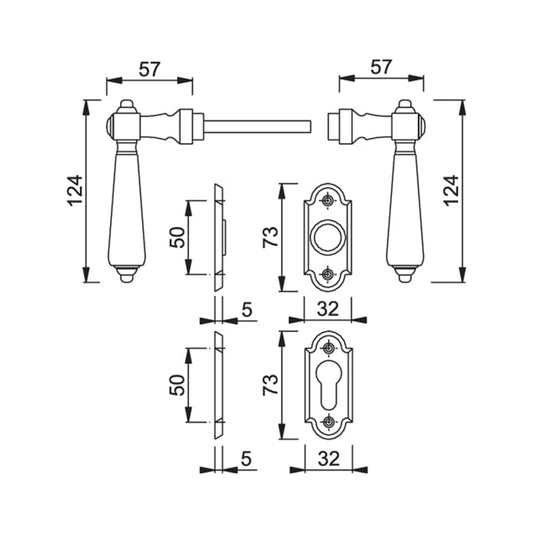 Maniglia Hoppe Acapulco rosetta e bocchetta rettangolari 53x49 mm
