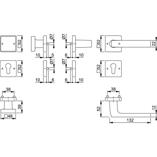 Maniglia Hoppe Dallas con rosetta e bocchetta quadra 49 mm