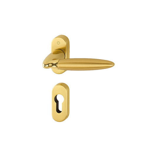 Maniglia per porte battenti oro plus rosetta e bocchetta tonde Colombo PETER