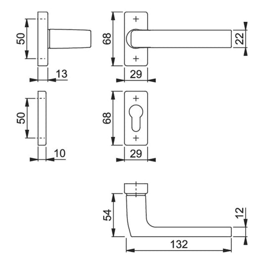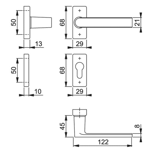Maniglia Hoppe Dallas rosetta e bocchetta rettangolare 29x68 mm argento