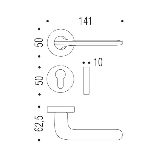 Maniglia Hoppe Amsterdam rosetta e bocchetta tonde d. 52 mm foro cilindro Secusan