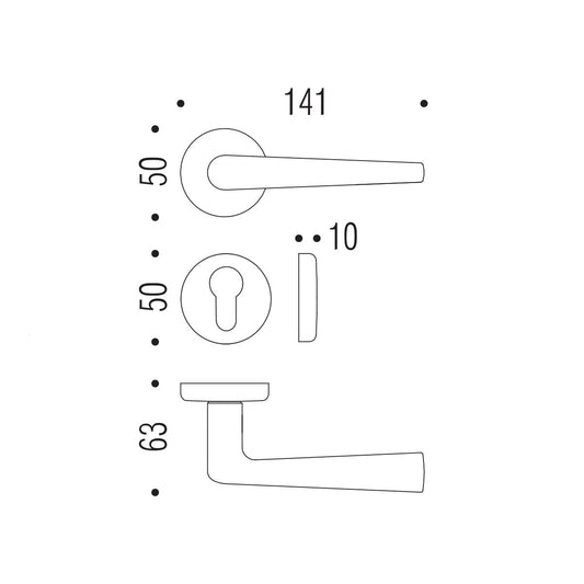 Maniglia porte Hoppe Los Angeles con rosetta quadra foro cilindro 49x49 mm