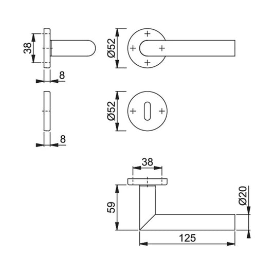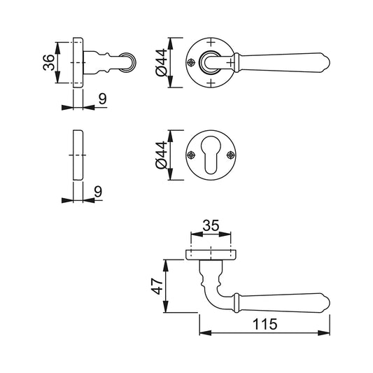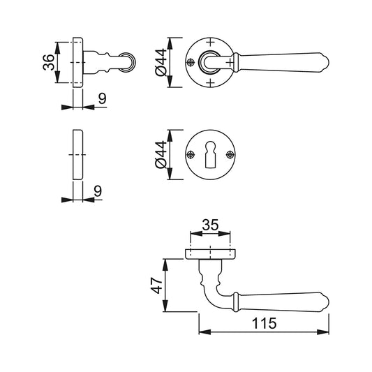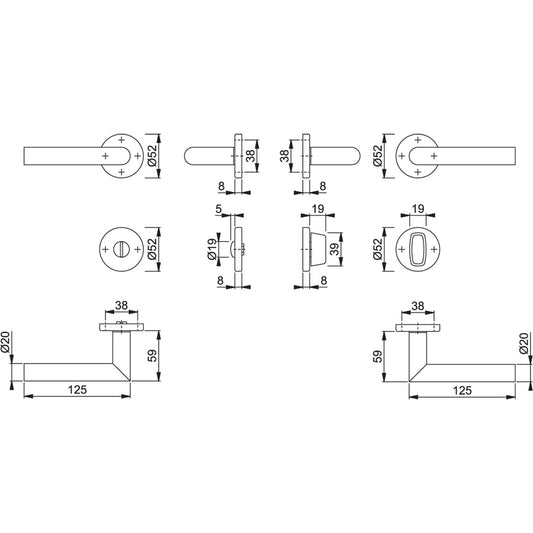 Maniglia Hoppe Elba con rosetta e bocchetta tonda foro cilindro d. 44 mm