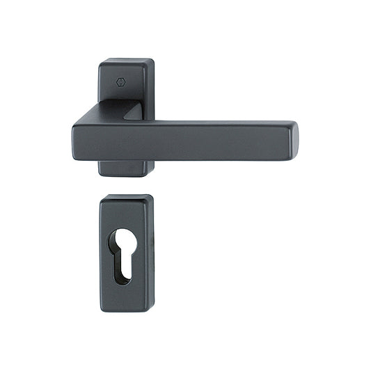 Maniglia Hoppe Toulon con rosetta rettangolare foro cilindro 30x69 mm