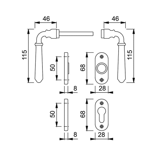 Maniglia Hoppe Elba con rosetta e bocchetta ovale foro cilindro 28x68 mm bronzato antiqua