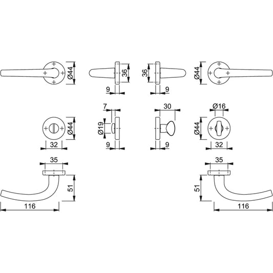 Maniglia Hoppe Hamburg rosetta e bocchetta tonde d. 52 mm