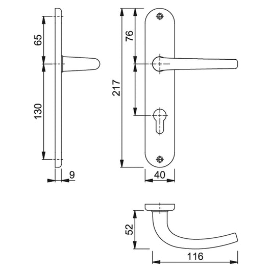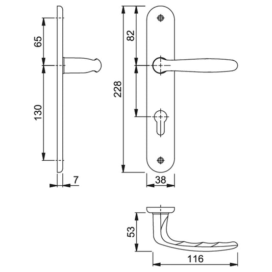 Maniglia Hoppe Tokyo con placca interasse 85 mm foro cilindro