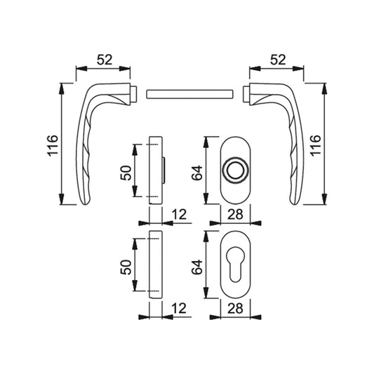 Maniglia Hoppe Santiago rosetta e bocchetta ovali 28x64 mm foro cilindro