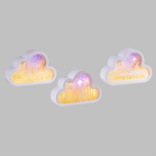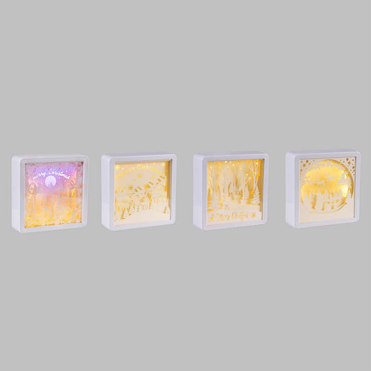 Decorazione natalizia innevata con luci LED e movimento 3 varianti