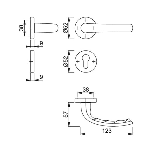 Maniglia Hoppe Verona rosetta e bocchetta tonde diametro 52 mm