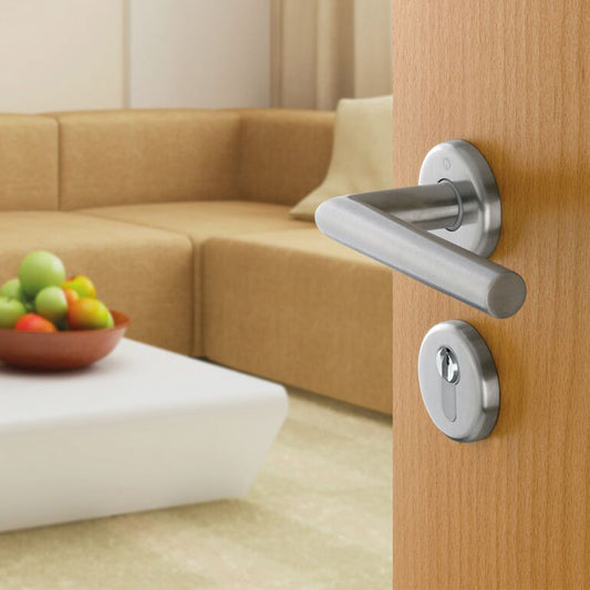Maniglia Hoppe Verona rosetta e bocchetta tonde d. 52 mm foro cilindro acciaio satinato